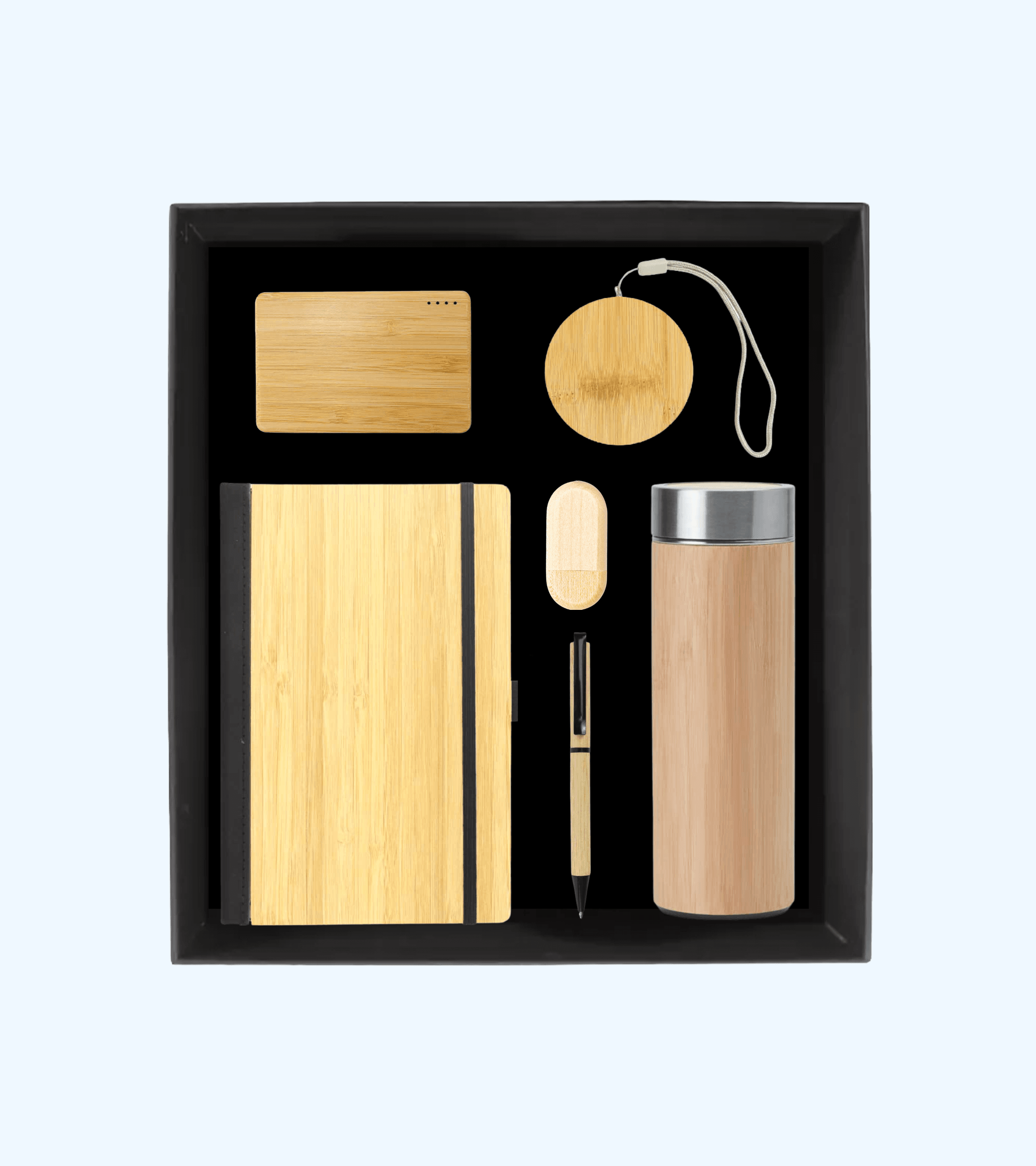 • Bamboo Power Bank – A reliable portable power source encased in bamboo, combining technology with nature for a premium gifting experience.